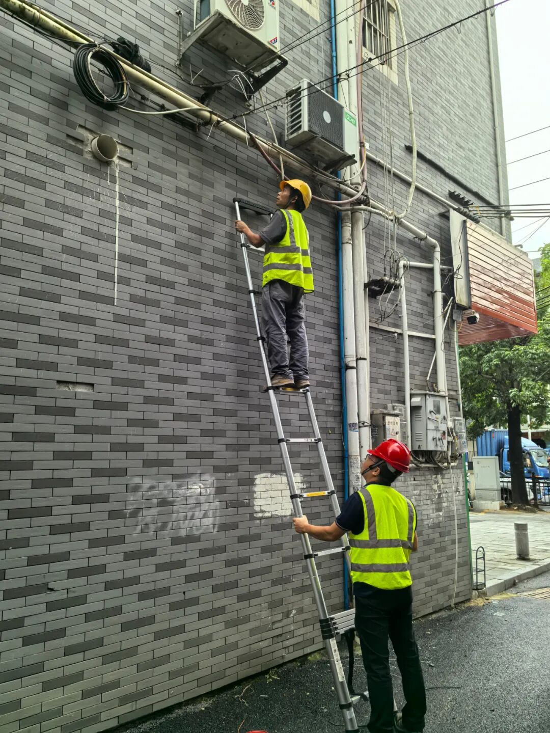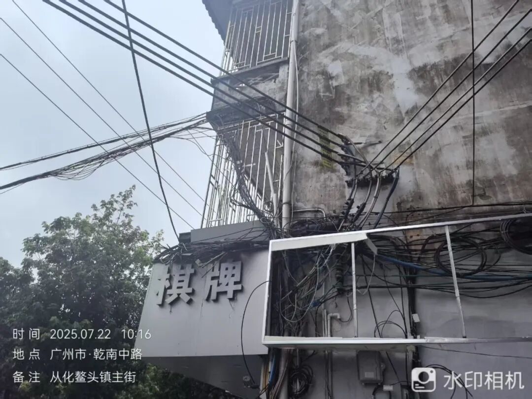 今年,鳌头镇前进路还被纳入重点整治范围。延续示范点成功经验,施工团队针对沿线及小巷内的商铺、居民房“三线”乱拉等情况,剥离混搭挂线缆、清理“飞线”与废旧线体、规范光交箱设置,成功实现“横平竖直、牢固美观”的整治效果。